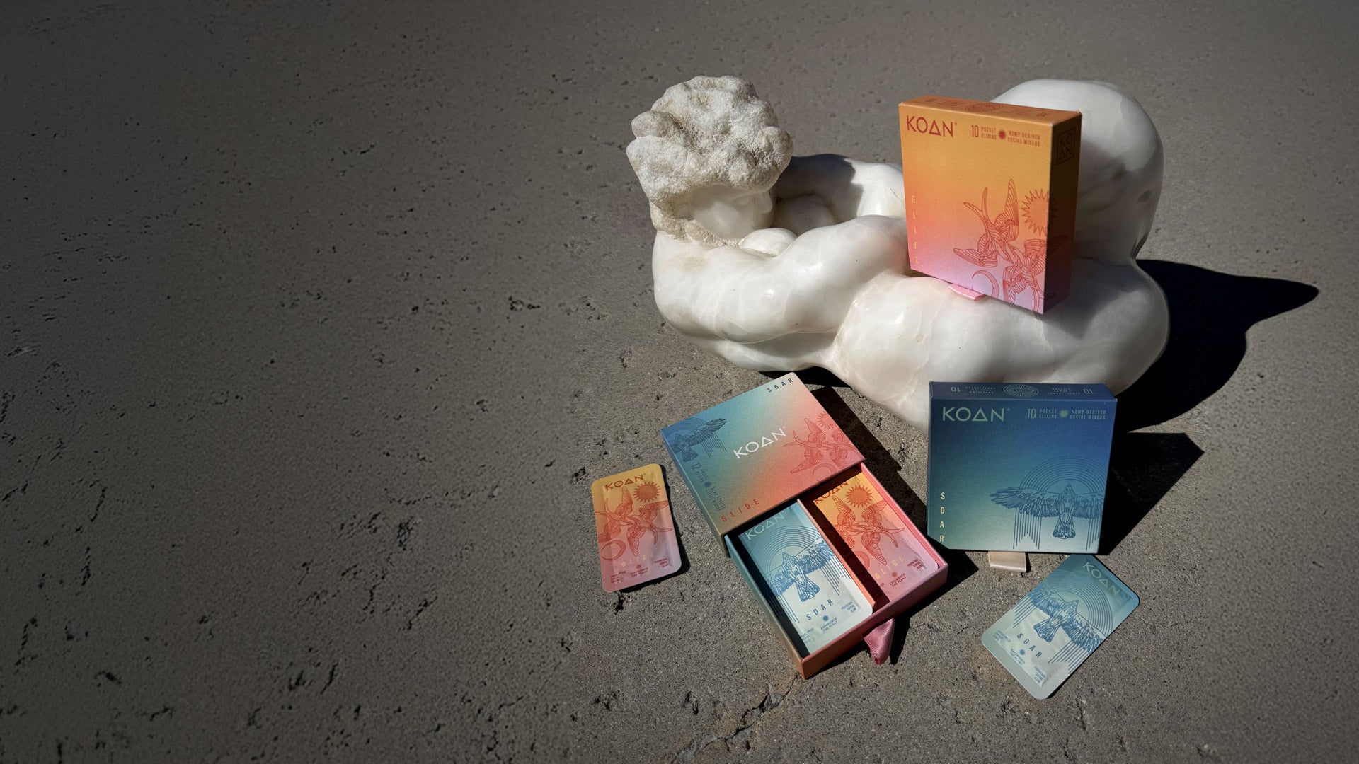 Our Pocket Elixir products are infused with Delta-9 THC, a psychoactive compound found in both cannabis and hemp. As with any THC product, just how high you get depends on your body’s response to THC, your tolerance, and the amount you consume. Koan formulates all of our products to provide you with a functional level of euphoria. As an example GLIDE, our lower THC product, will provide a relaxing and positive experience but you will still be perfectly fine helping your kids with Math homework. With SOAR, you will probably prefer to do much more interesting things with your time.
